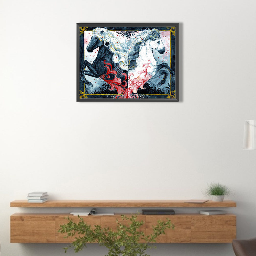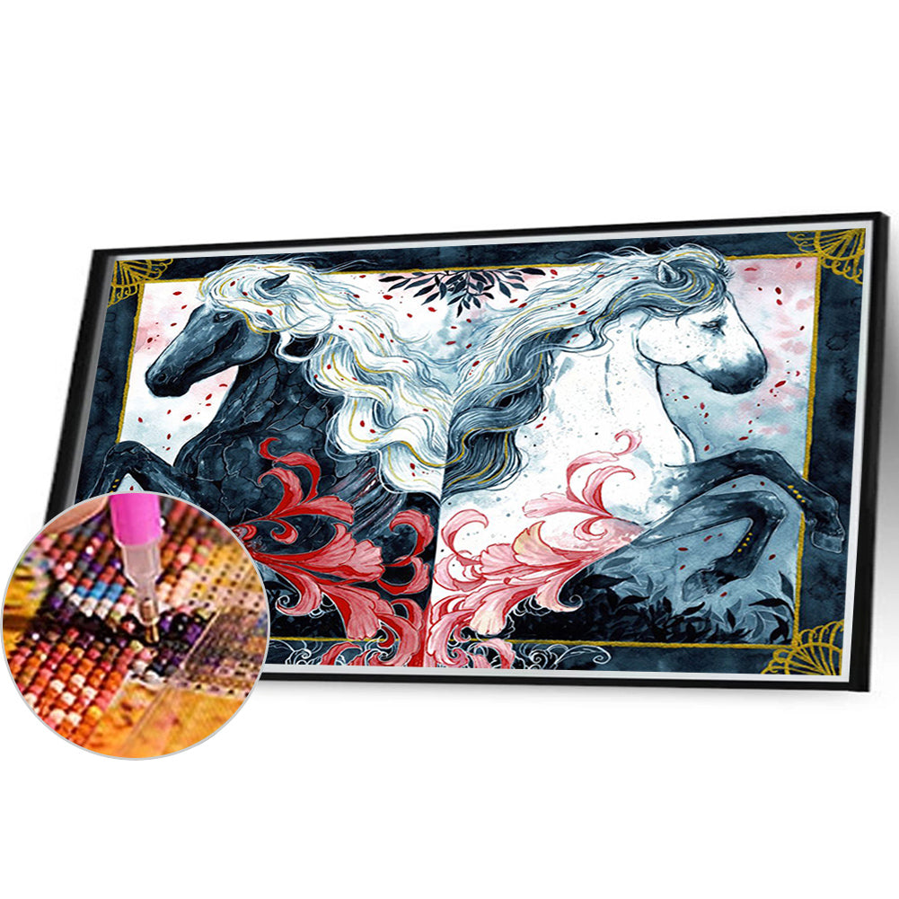 Diamond Painting - Full Round - black horse white horse (40*30CM)