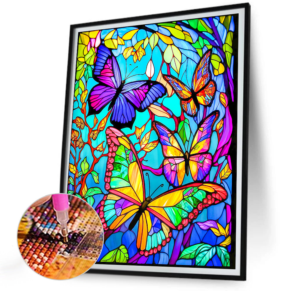 Diamond Painting - Full Round - butterfly glass painting (30*40CM)