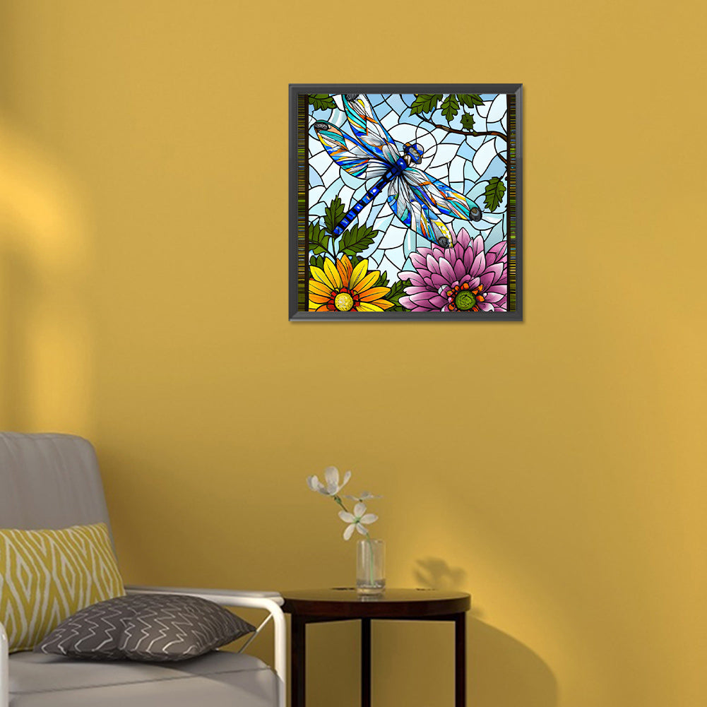 Diamond Painting - Full Round - Flowers and Dragonflies (30*30CM)