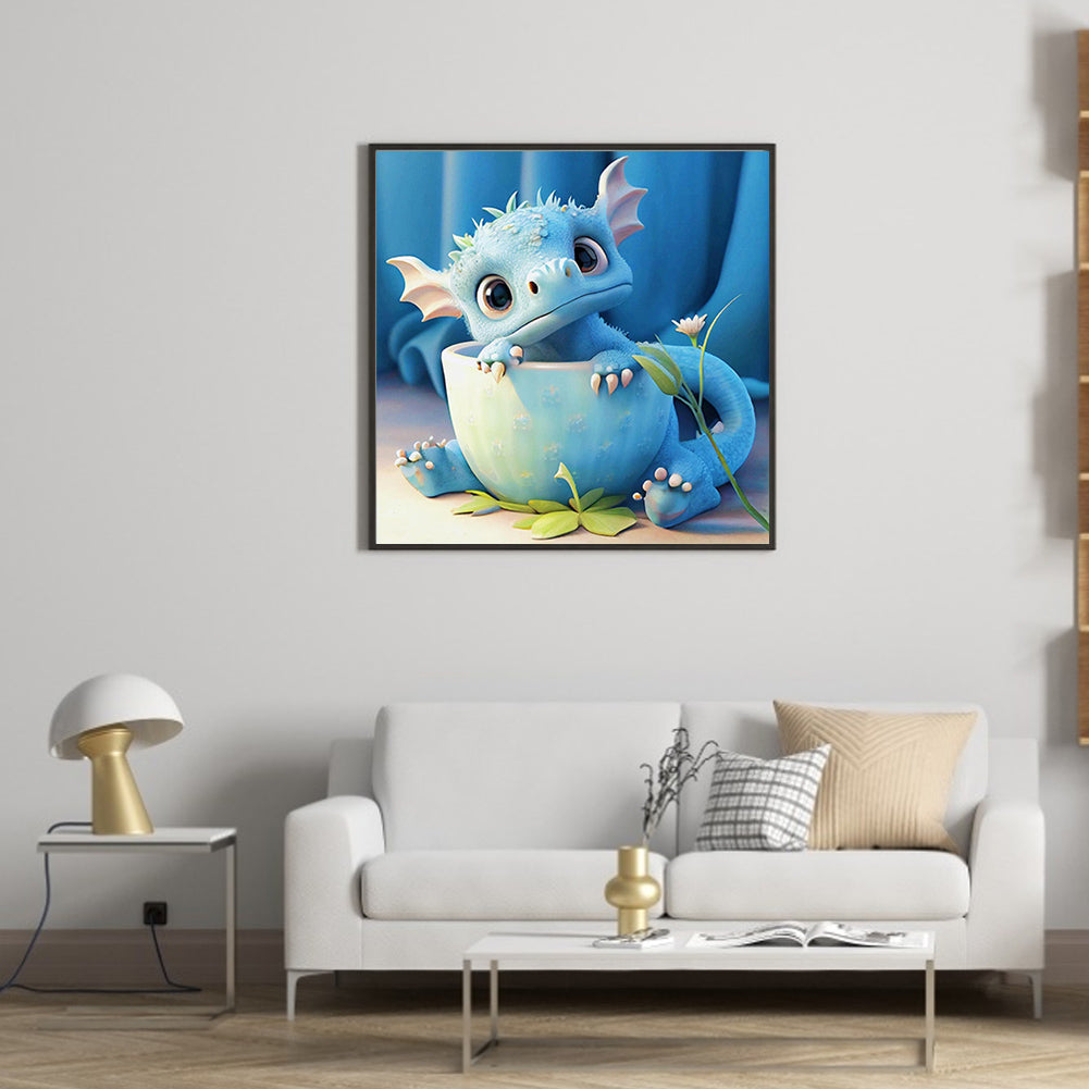 Diamond Painting - Full Round - Light blue potted version of the zodiac dragon (30*30CM)
