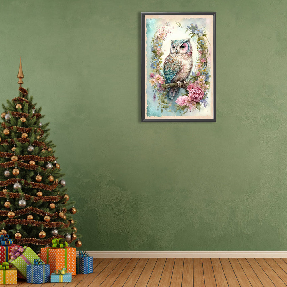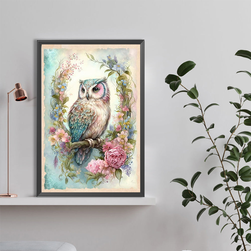 Diamond Painting - Full Round - Owl on wreath (40*60CM)