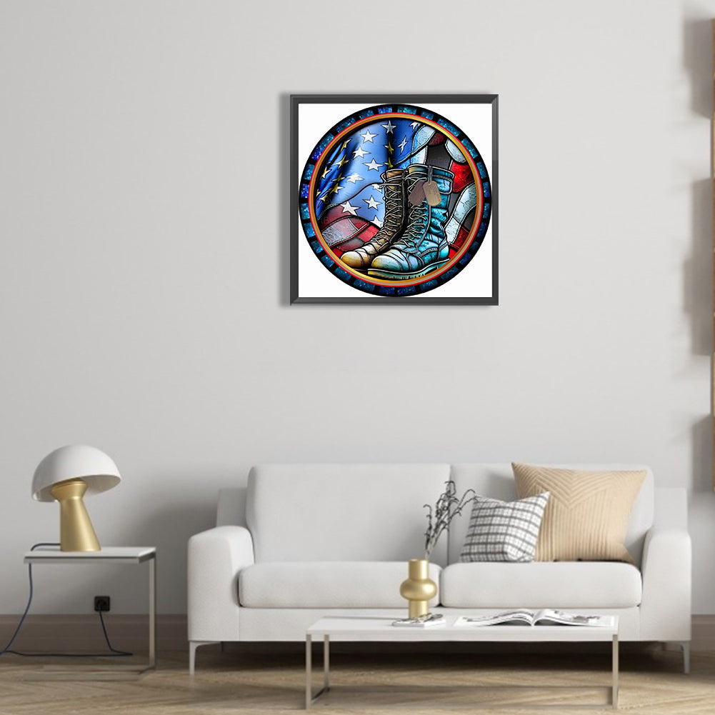 Diamond Painting - Full Round - Round plate glass art military boots (30*30CM)