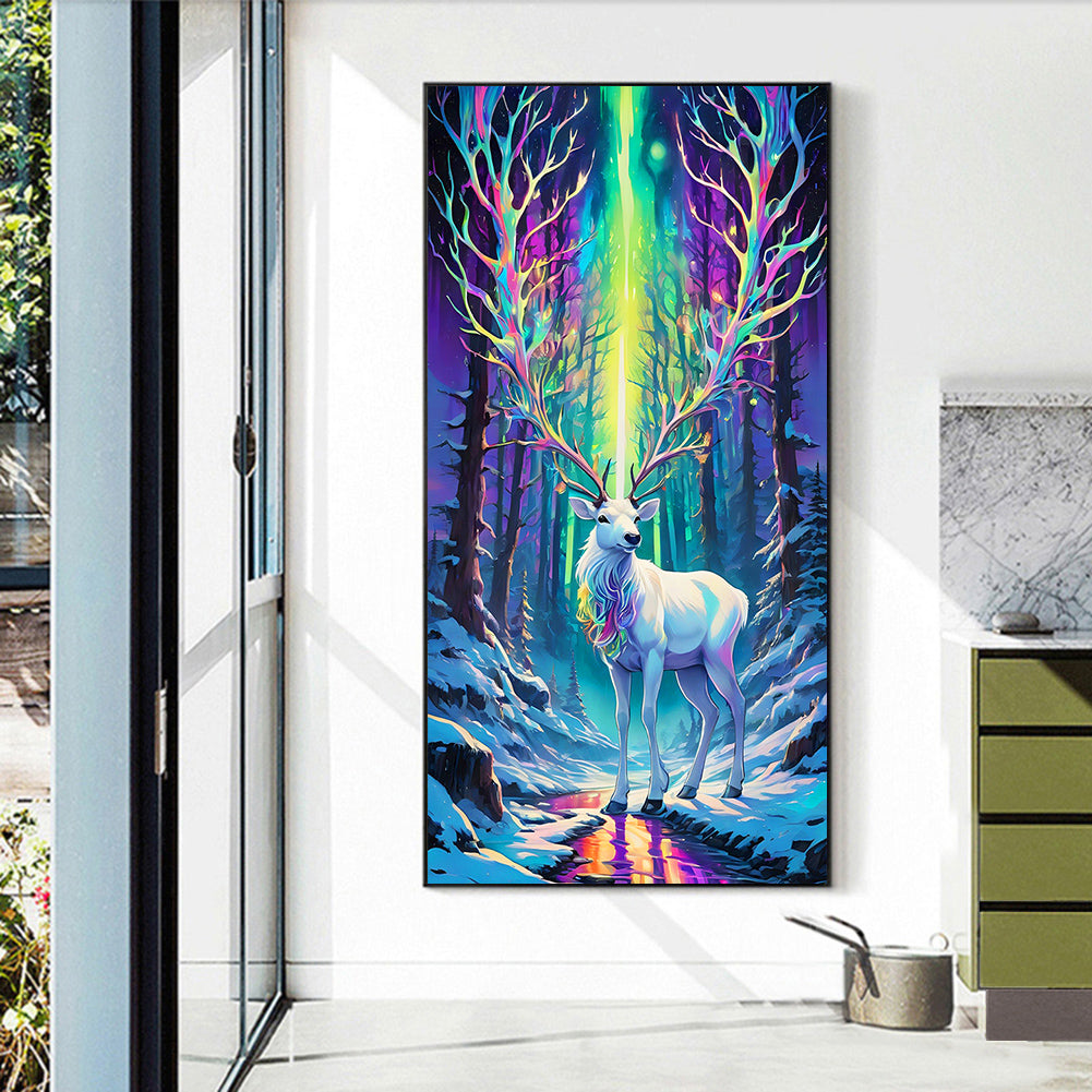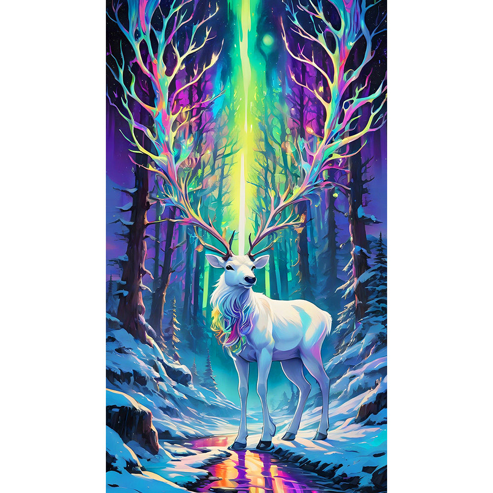 Diamond Painting - Full Round - White deer under the aurora (40*70CM)