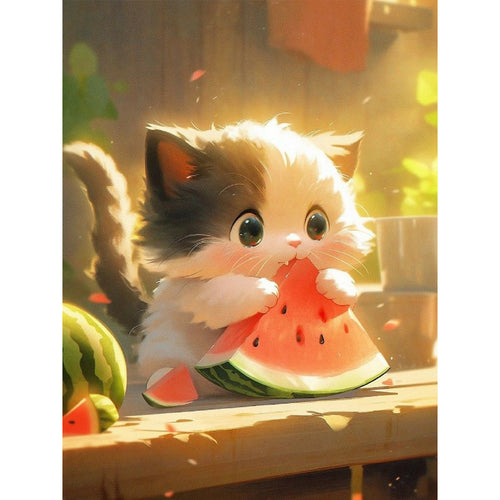 Diamond Painting - Full Round - kitten eating watermelon (30*40CM)