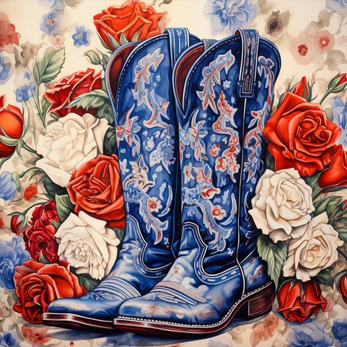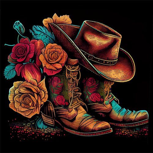 Diamond Painting - Full Round - floral cowboy boots (40*40CM)