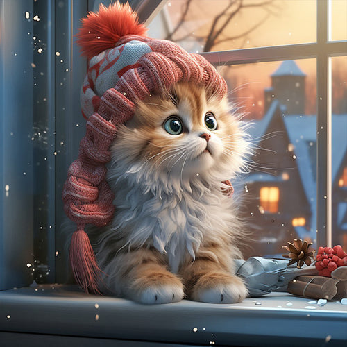 Diamond Painting - Full Round - winter night kitten (40*40CM)
