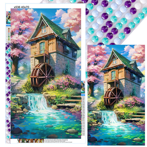 Diamond Painting - Full Round - house by pond (40*70CM)