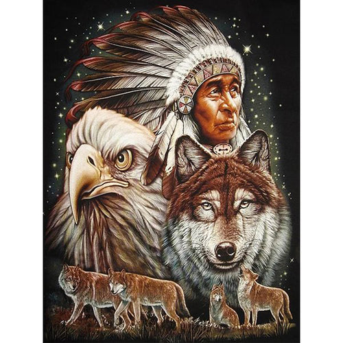 Diamond Painting - Full Round - Indians and Wolves (30*40CM)