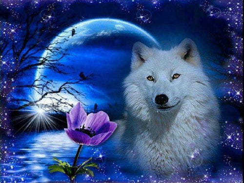 Diamond Painting - Full Round - Arctic wolf under the moon (50*40CM)