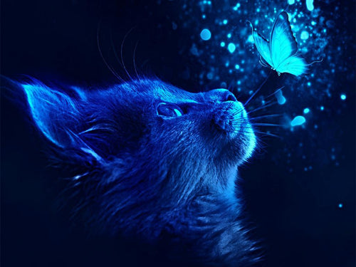 Diamond Painting - Full Round - blue cat butterfly (50*40CM)