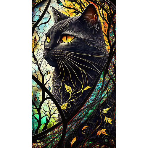 Diamond Painting - Full Round - Black Cat Glass Art (40*70CM)