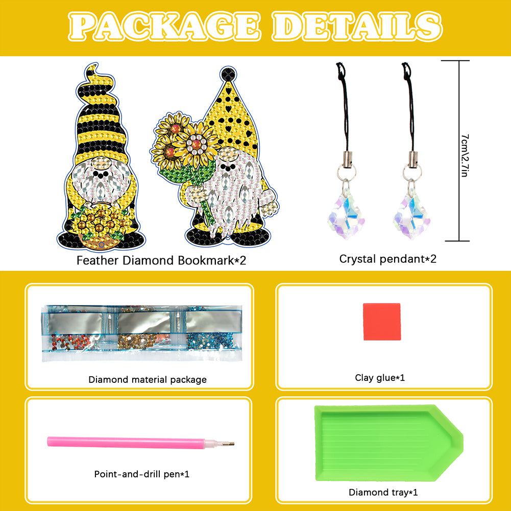 2Pcs Special Shaped Cute Gnome 5D DIY Diamond Art Book Mark for Reading Day Gift