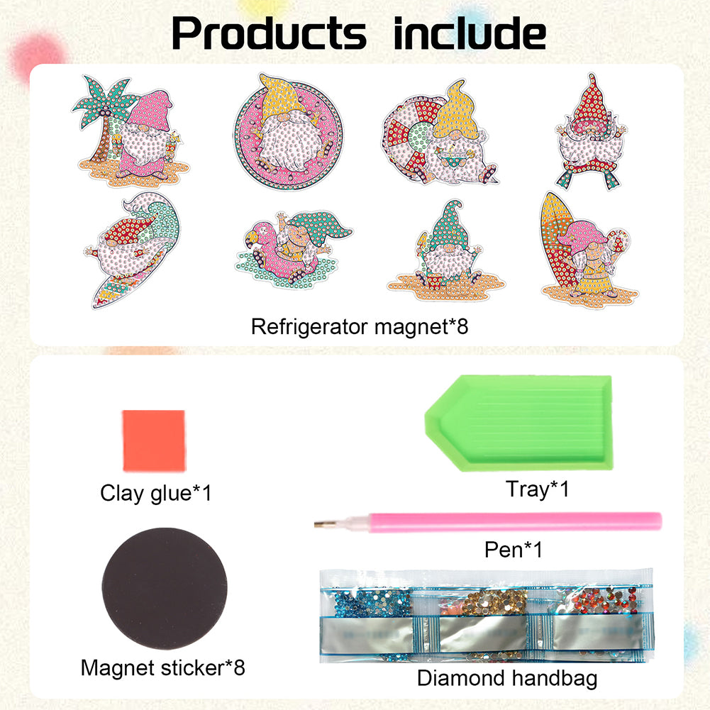 8Pcs Special Shape Ocean Gnomes Diamond Painting Fridge Magnet for Home Decor