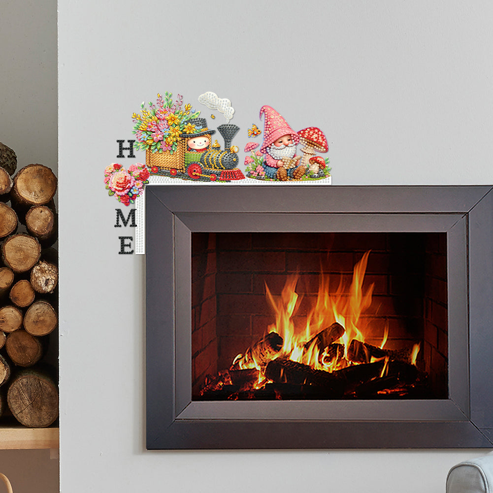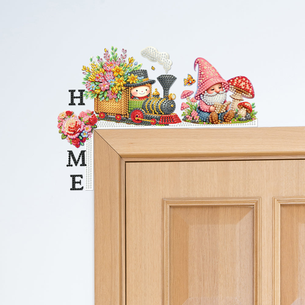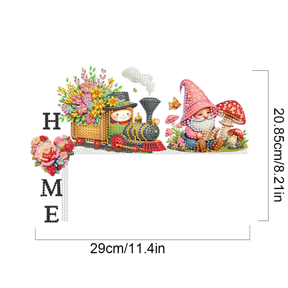 Gnome Train House Diamond Painting Art Door Right Angle Sign for Home Decor