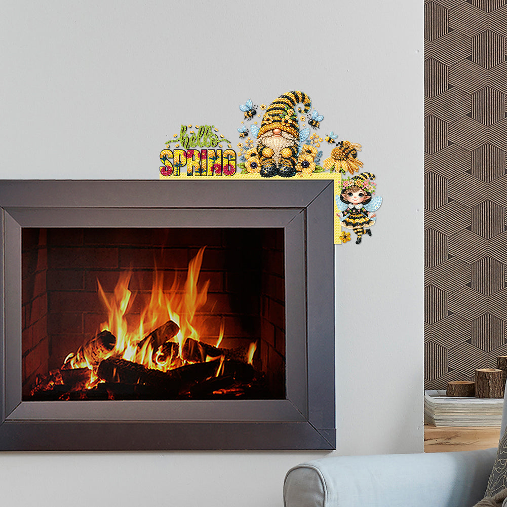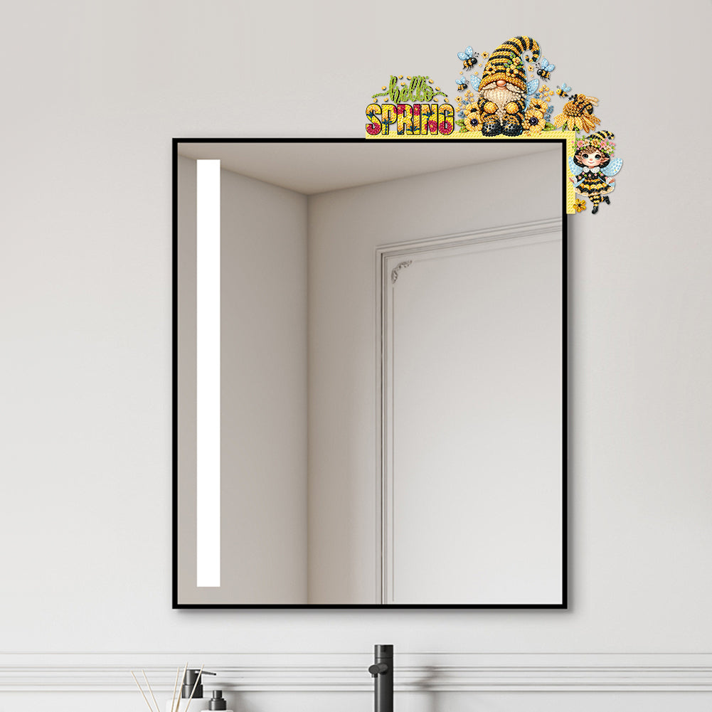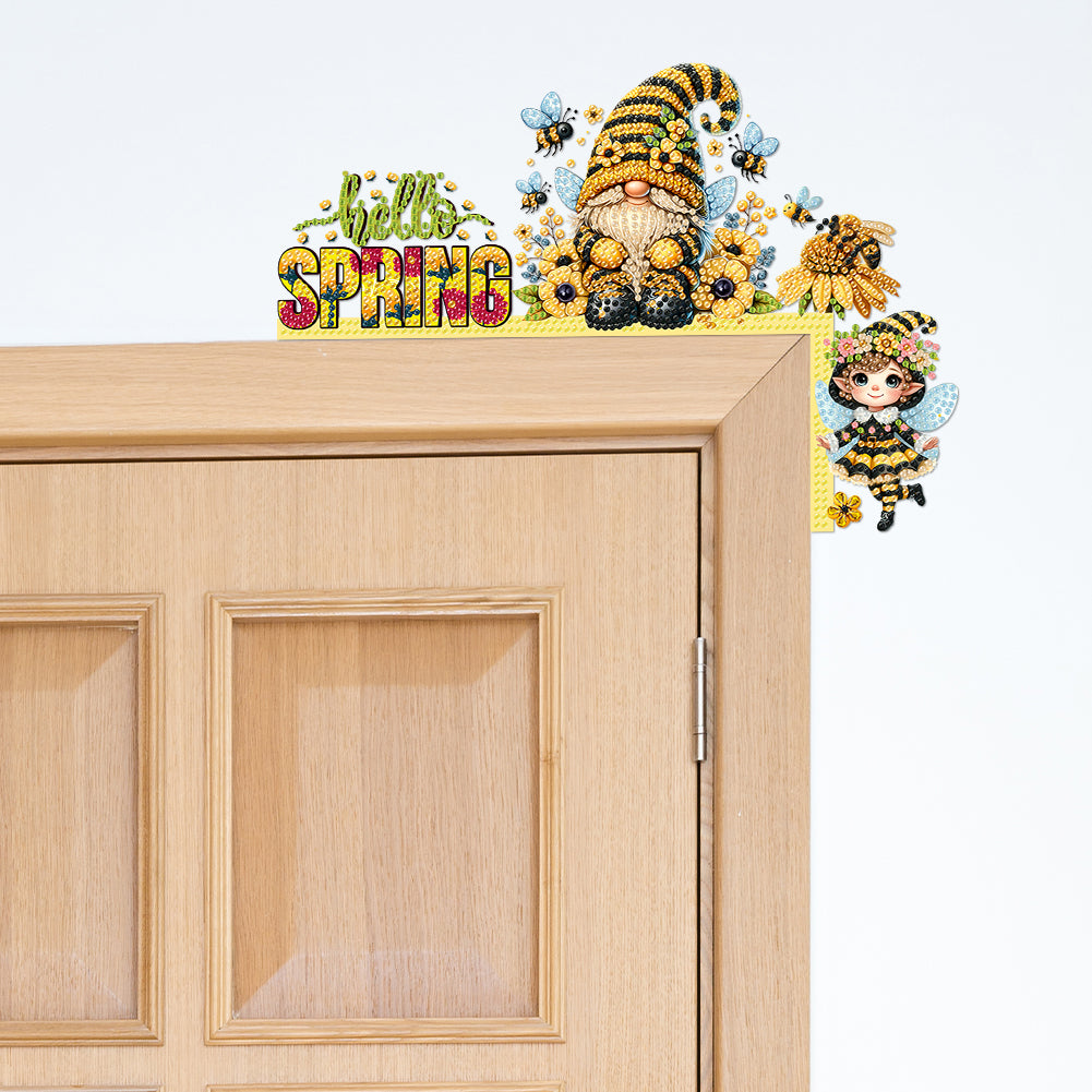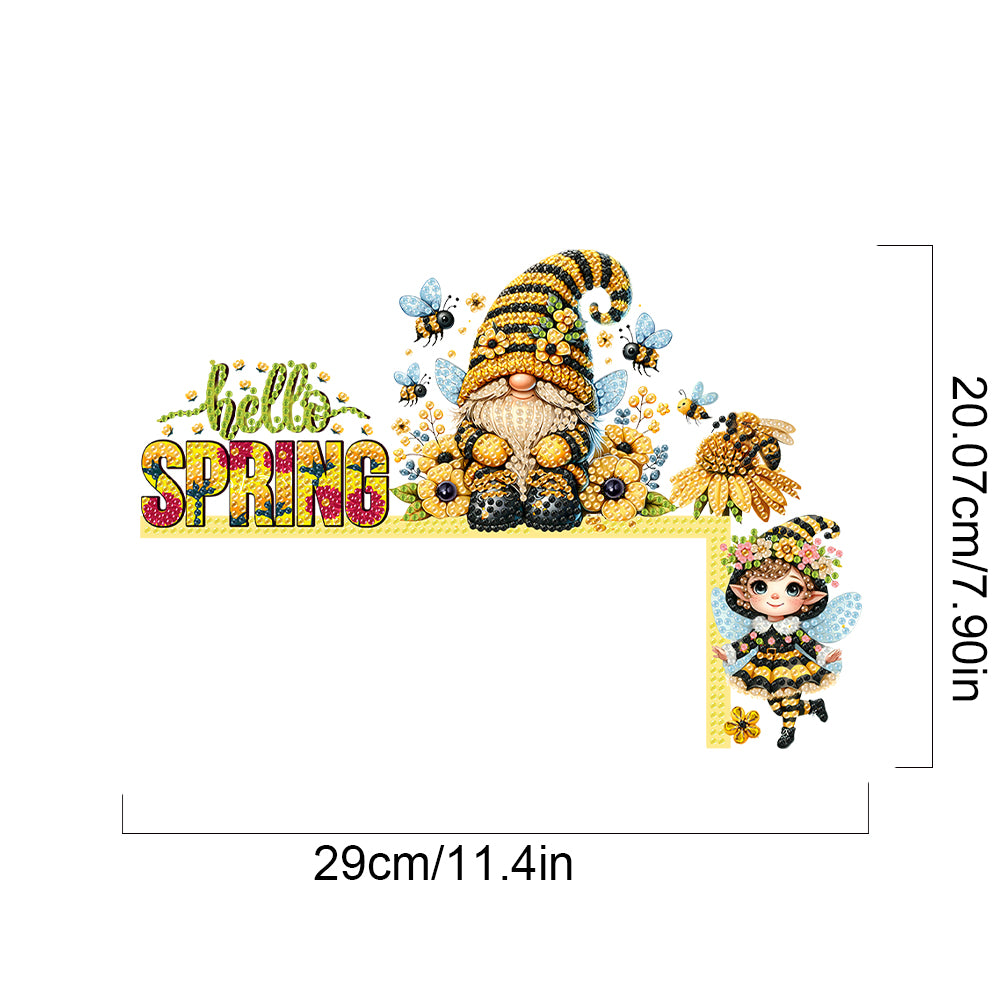 Spring Bee Gnome Diamond Painting Art Door Right Angle Sign for Home Decor