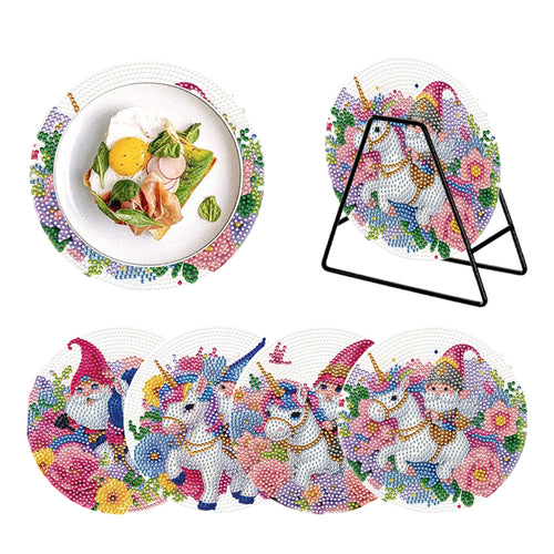 4 PCS Acrylic Diamond Painted Placemats Tableware Mat with Holder(Unicorn Gnome)