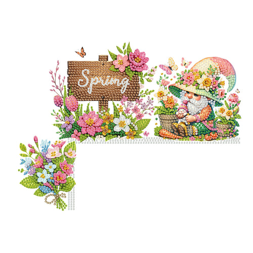 Spring Garden Gnome Diamond Painting Art Door Right Angle Sign for Home Decor