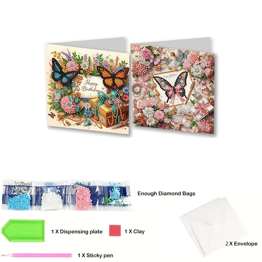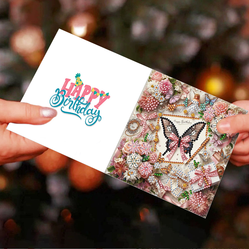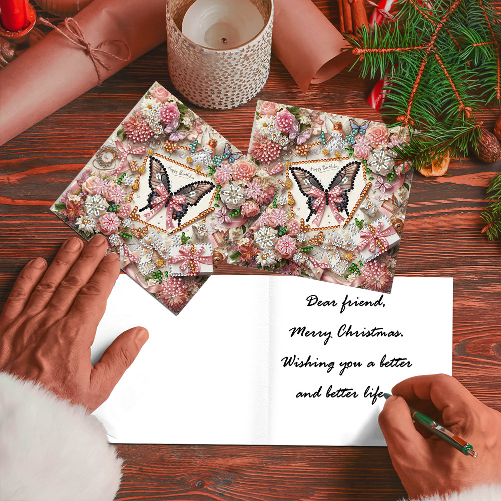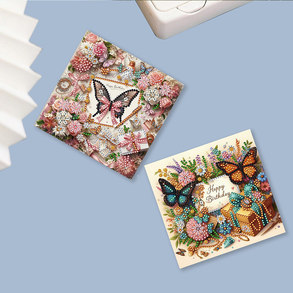 2/6/12Pcs Butterfly and Flower DIY Diamond Painting Card Diamond Daily Wish Card