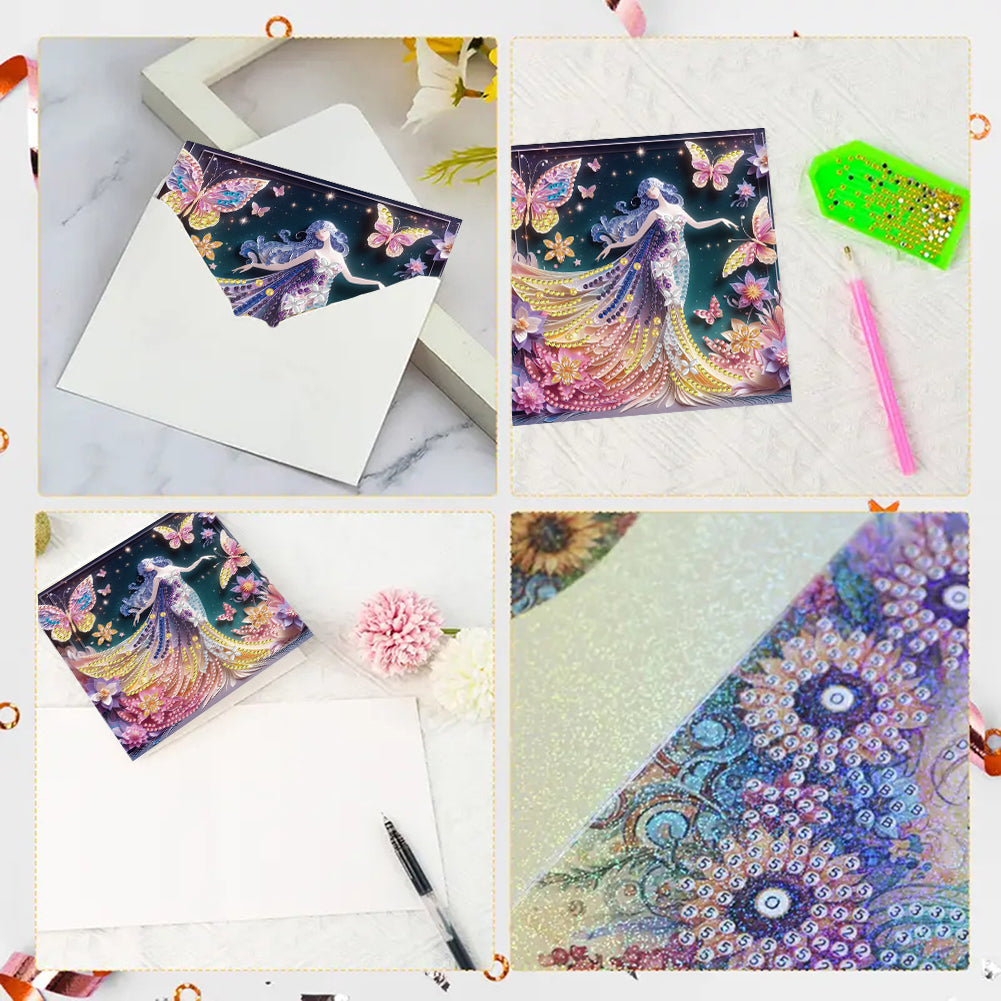 6pcs Diamond Painting Greeting Cards DIY Diamond Art Cards for Adults (Girl A)