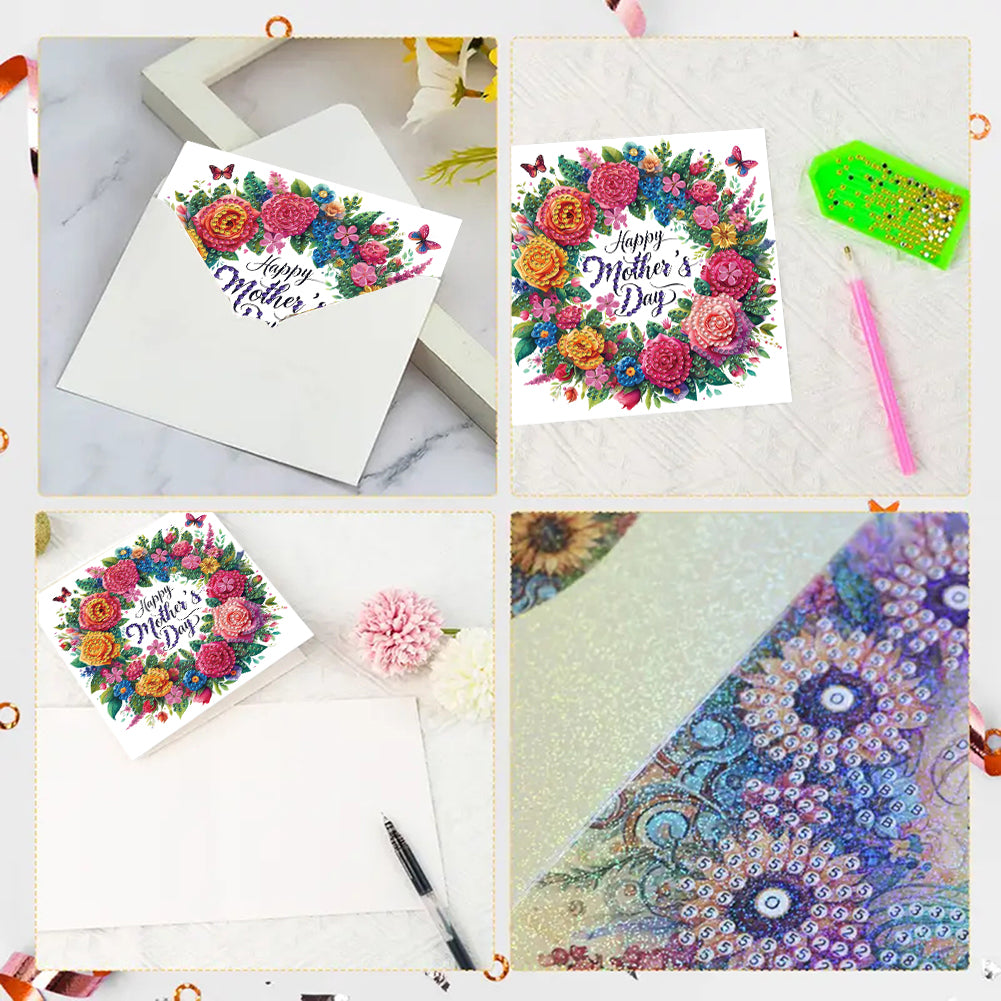 6pcs Diamond Painting Greeting Cards DIY Diamond Art Cards for Adults (Wreath)