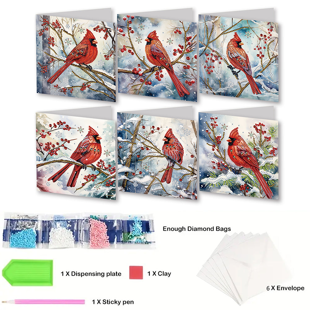 6Pcs Finch DIY Diamond Painting Card for Holiday Party Favors for Adults Kids