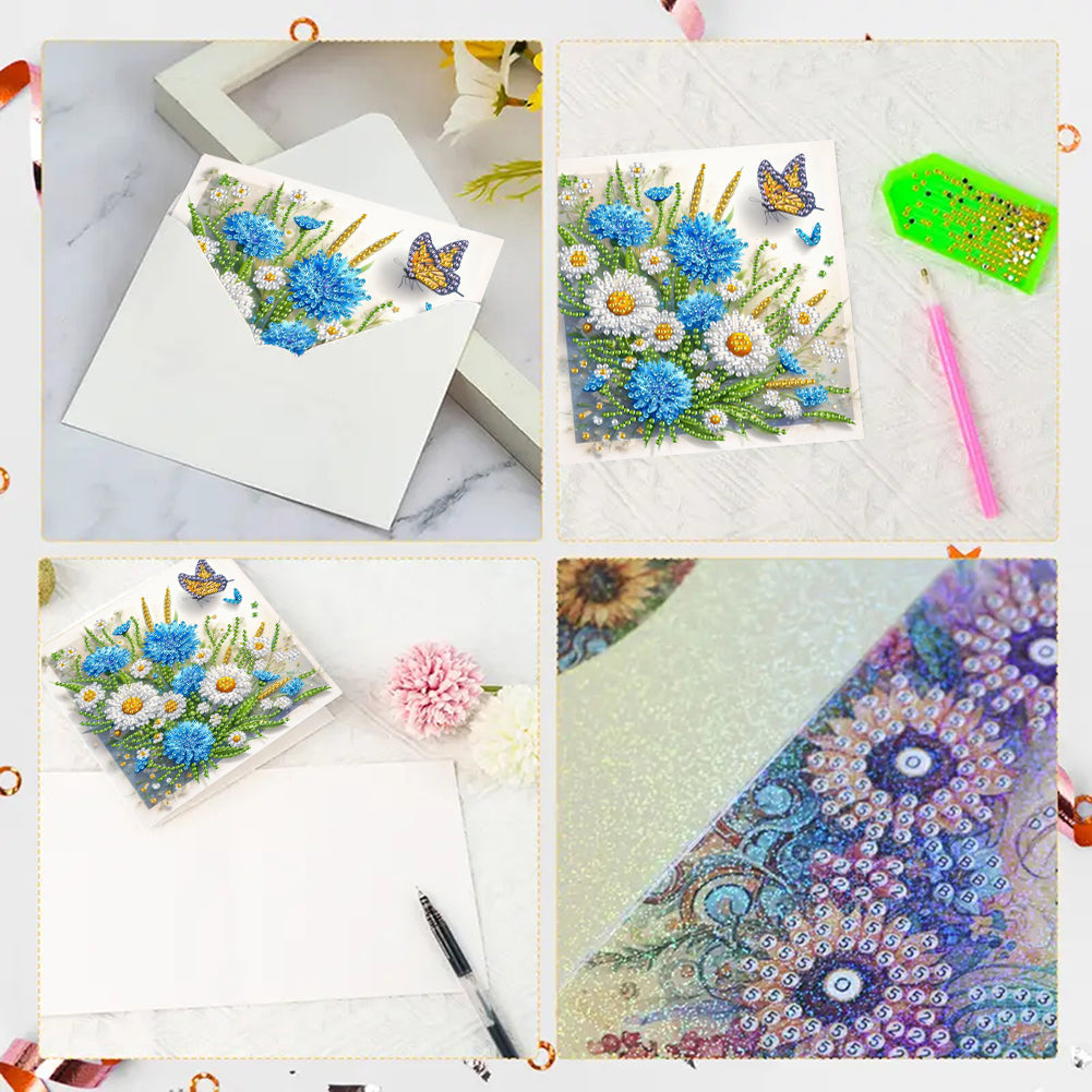 6PCS Flowers DIY Diamond Art Greeting Cards Congratulations Cards & Gifts