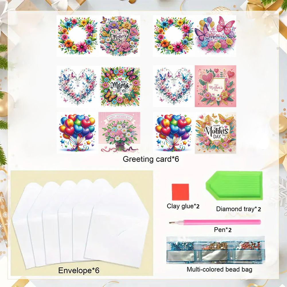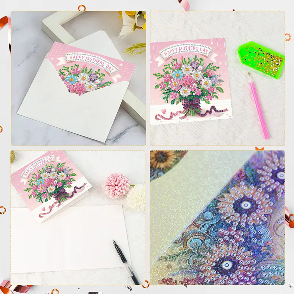 6Pcs Mother s Day Diamond Handmade Card Diamond Painting Greeting Card