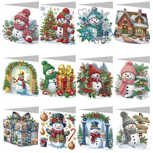 12Pcs Christmas Snowman DIY Diamond Painting Card for Friends Family Gift