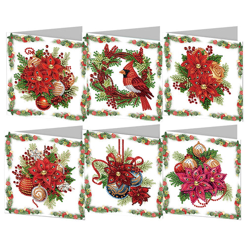 6Pcs Christmas Red Flower DIY Diamond Painting Card for Friends Family Gift