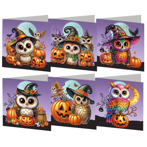 6Pcs Halloween Cat Diamond Daily Wish Card Owl for Adults Holiday Friends Family