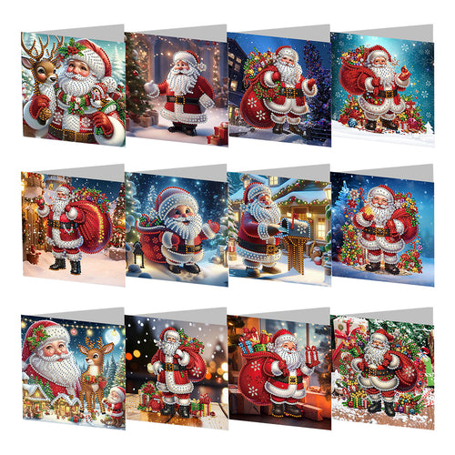 12Pcs Christmas Santa Claus Special Shape Diamond Panting Greeting Card