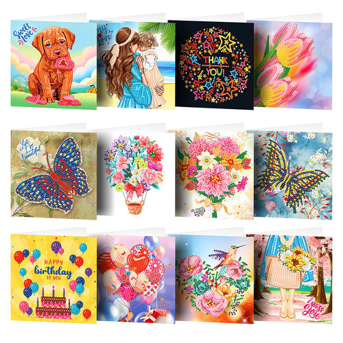 12pcs DIY Diamond Painting Greeting Cards Mosaic Birthday Postcard