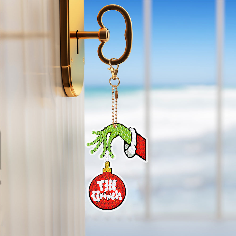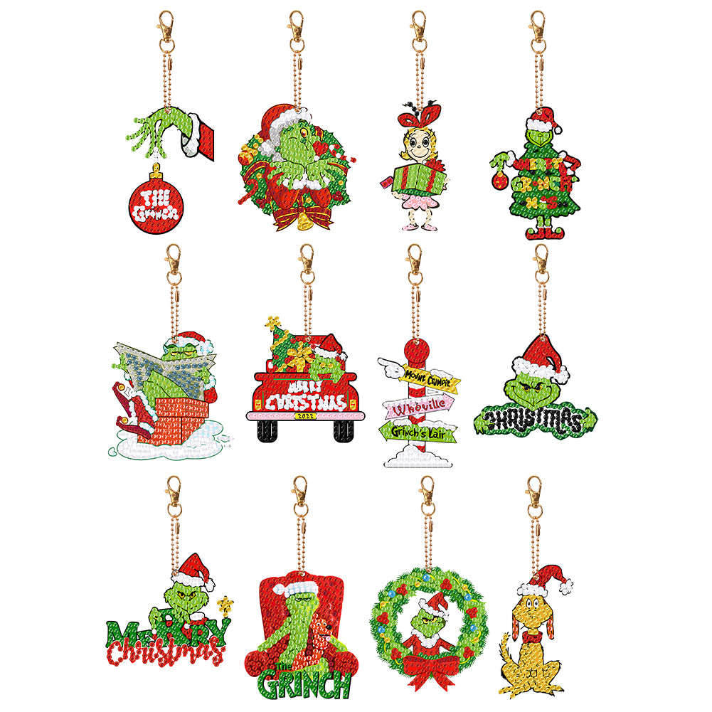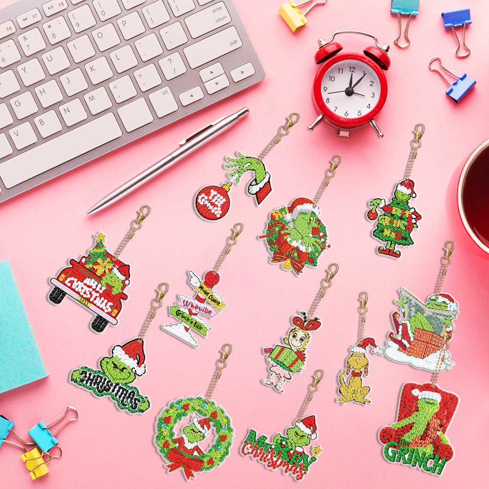 12PCS Double Sided Diamond Art Keyring Grinch for Adult Kid Purse Handbag Decor