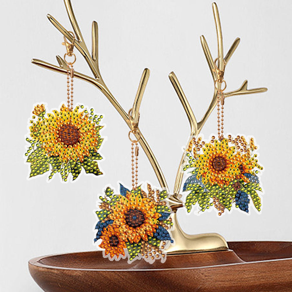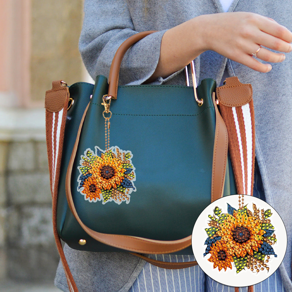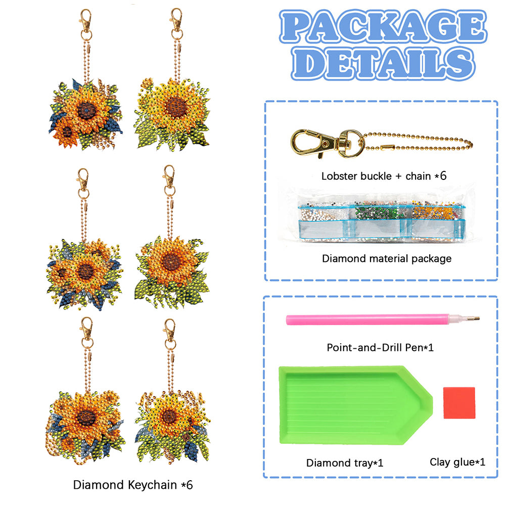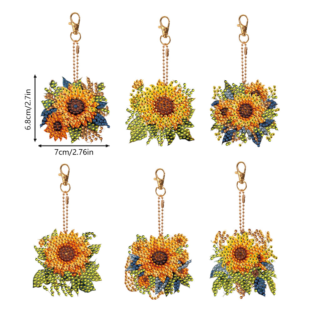 6 PCS Double Sided Diamond Painting Art Keychain Full Drill Keyring (Sunflower)