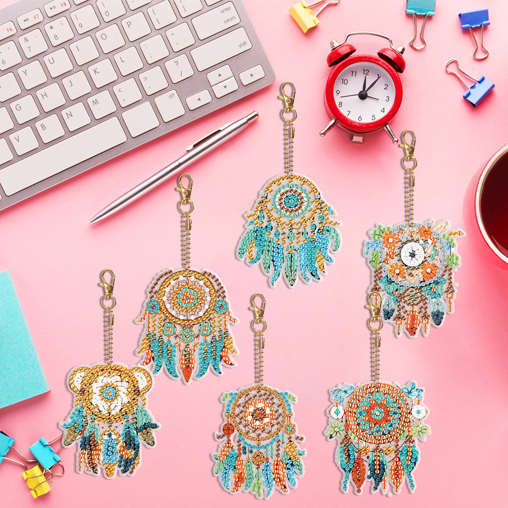 6 PCS Double Sided Flower Dreamcatcher Diamond Painting Keychain for Beginners