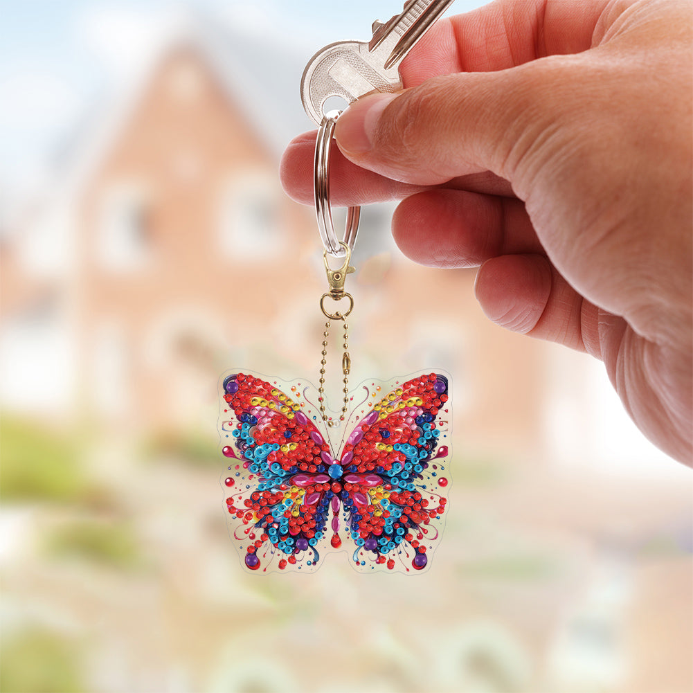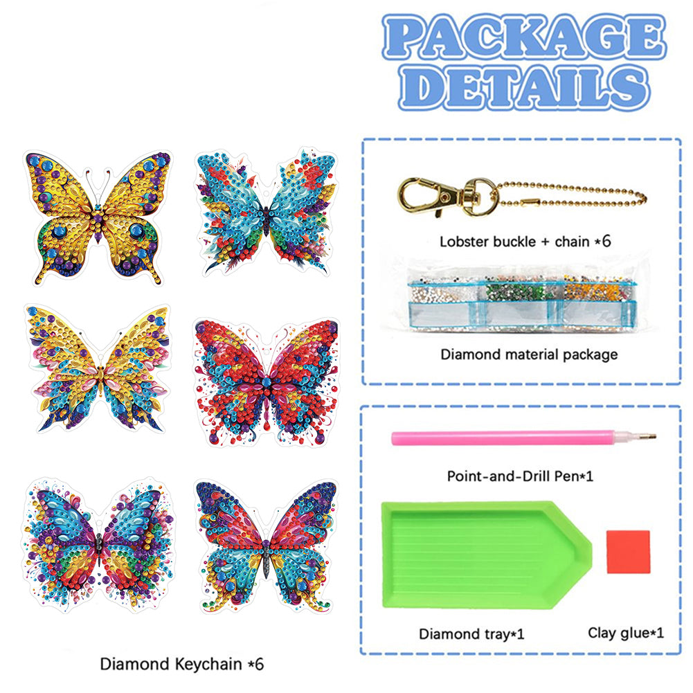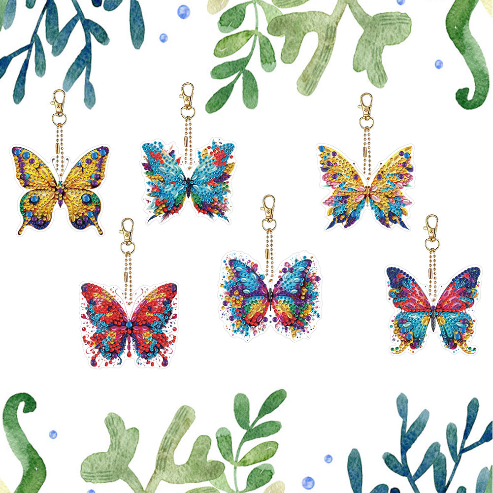 6Pcs Acrylic Double Sided Butterfly Diamond Painting Keychain for Bag Decor