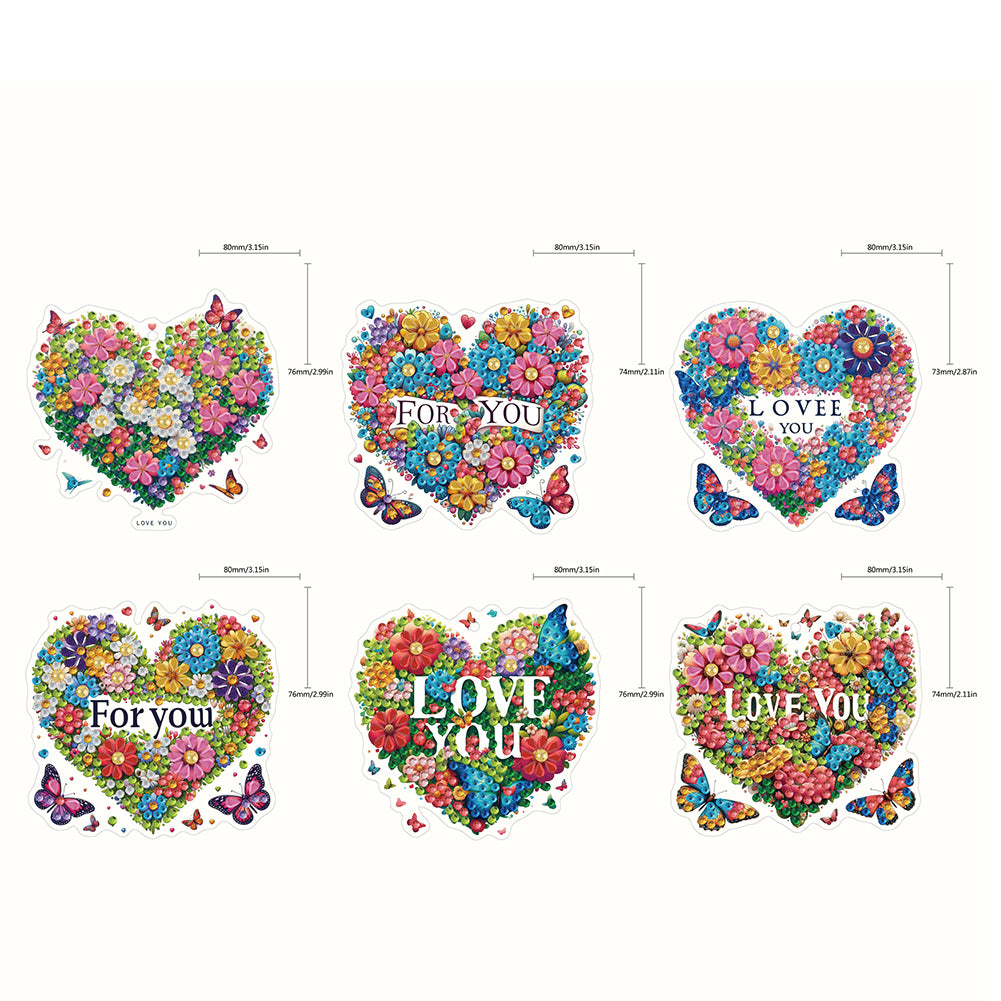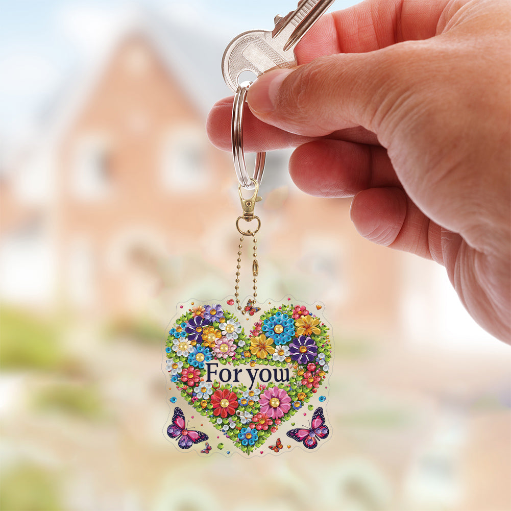6Pcs Acrylic Double Sided Heart Diamond Painting Keychain for Bag Decor