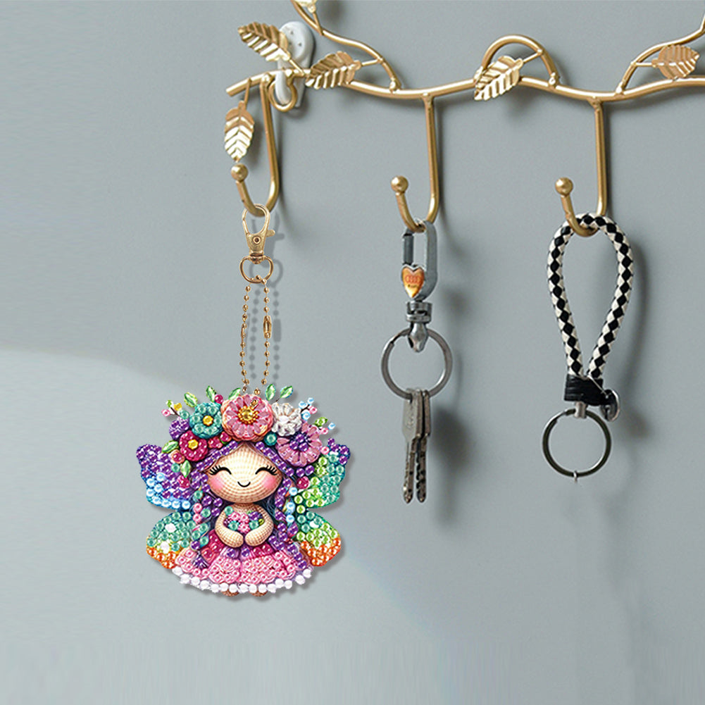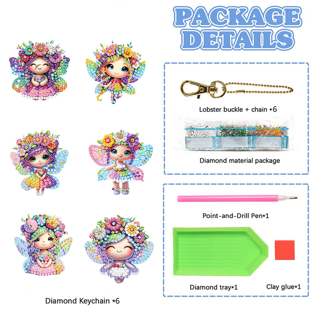 6Pcs Double Sided Cartoon Diamond Painting Art Keychain Pendant DIY Crafts Decor
