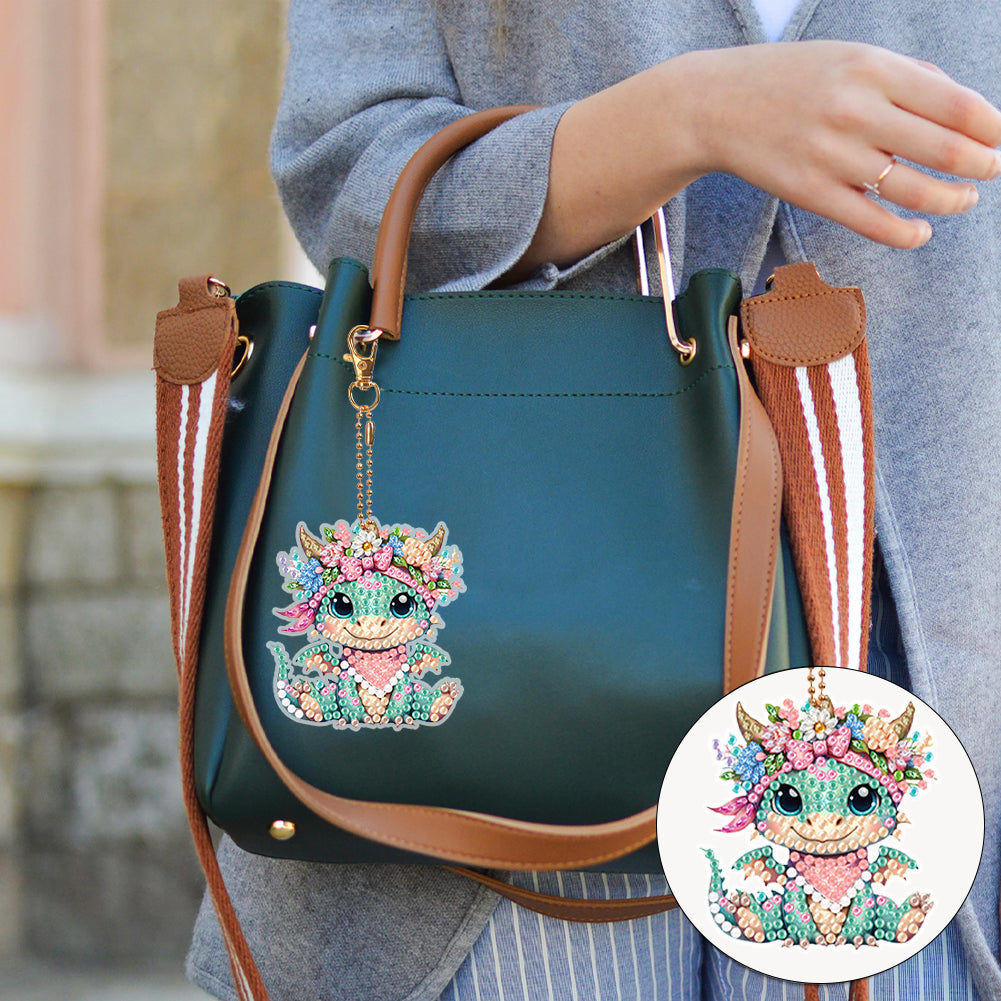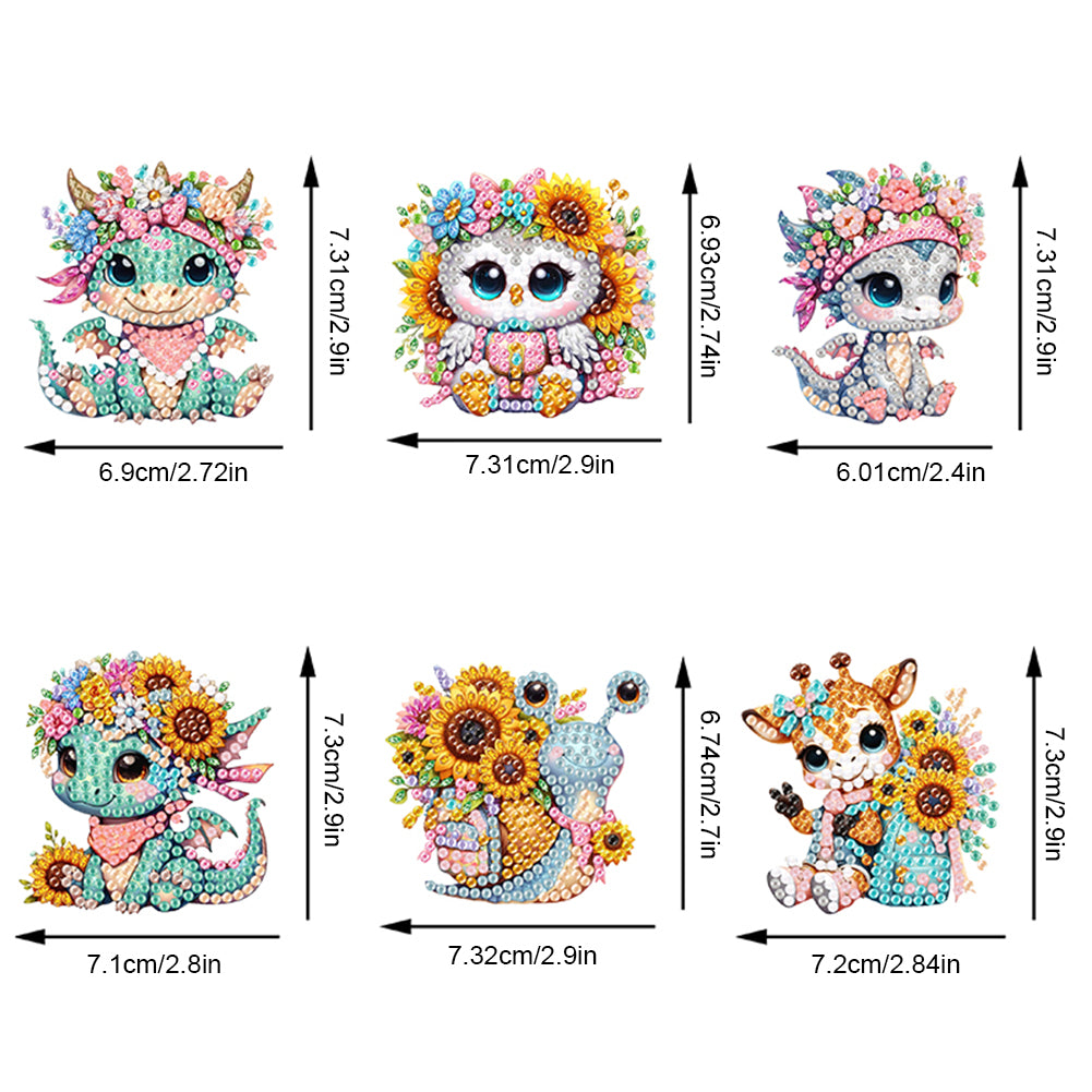6Pcs Double Sided Flower Animal Diamond Art Keyring Cute Animal DIY Crafts Decor