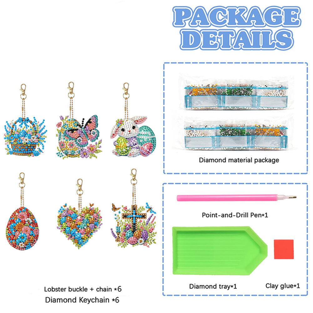 6Pcs Double Sided Special Shape Diamond Art Keyring Diamond Painting Keychain Diamond Art Craft Keychain DIY Crafts Decor