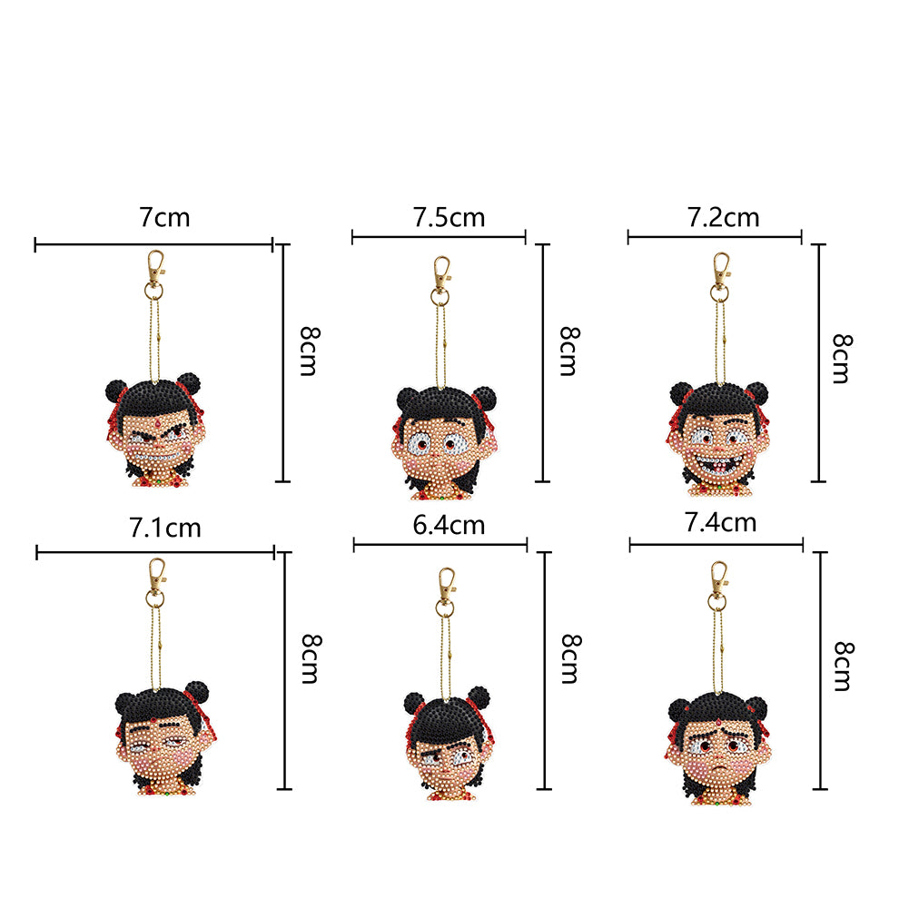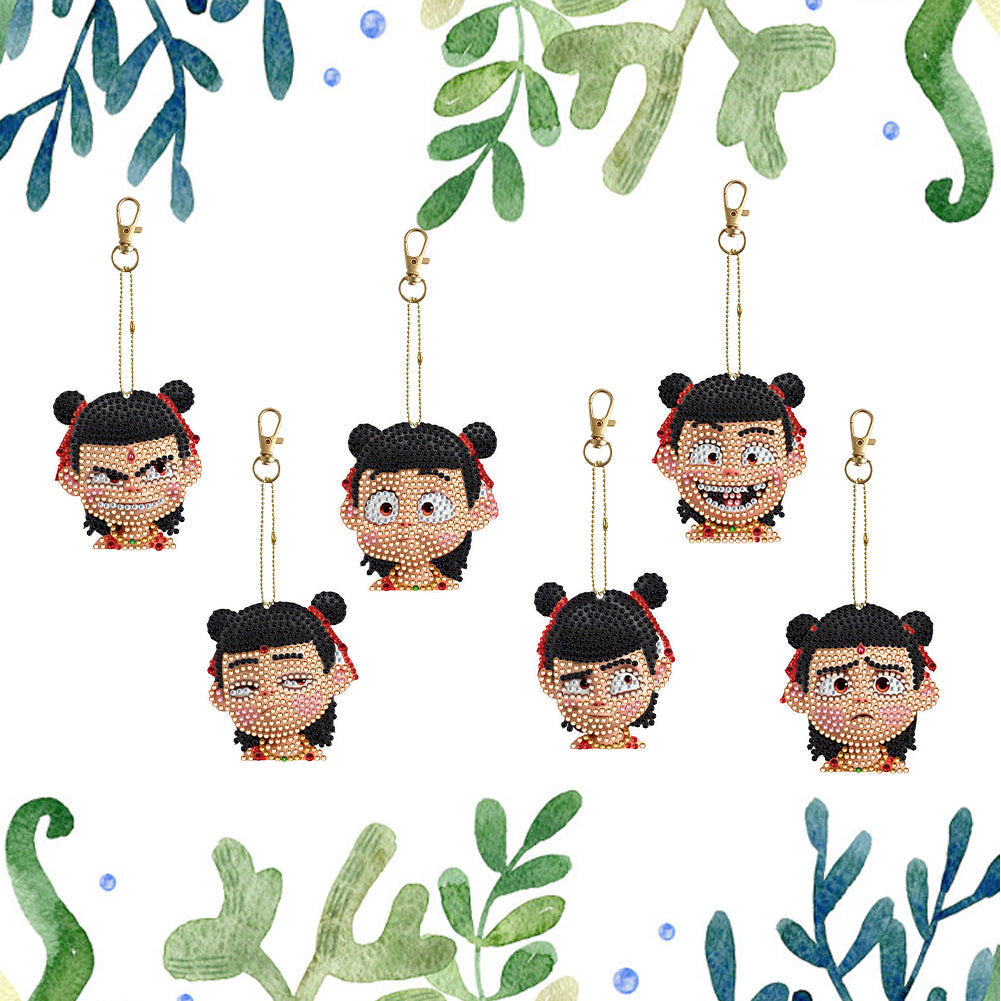 6Pcs Double Sided Special Shaped Cartoon Nezha Diamond Painting Keychain Diamond Painting Art Keychain Pendant DIY Crafts Decor