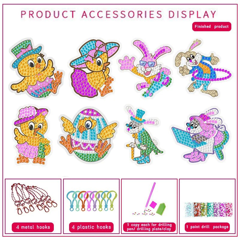 8/15PCS Animals Double Sided Diamond Painting Art Keychain Pendant for Beginners