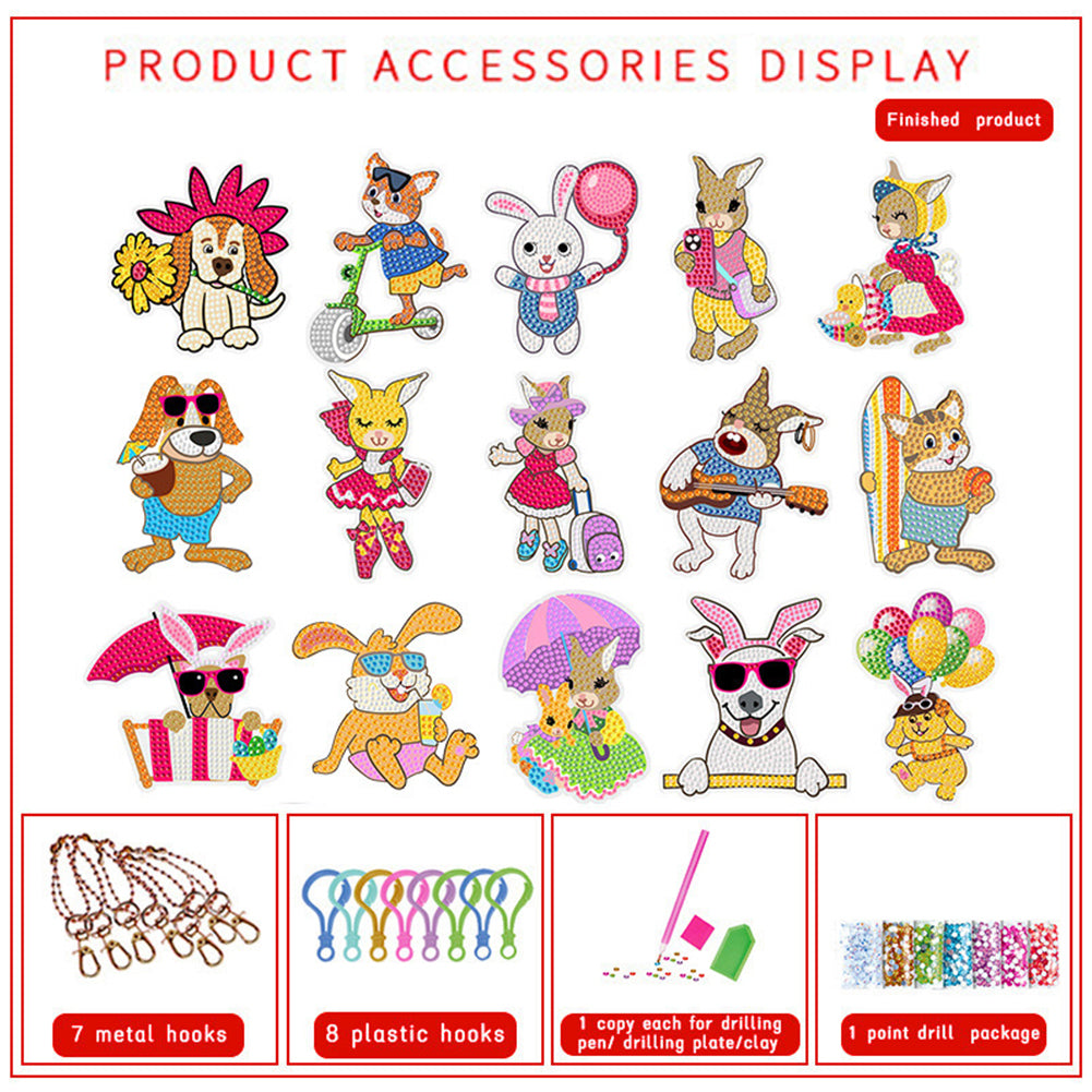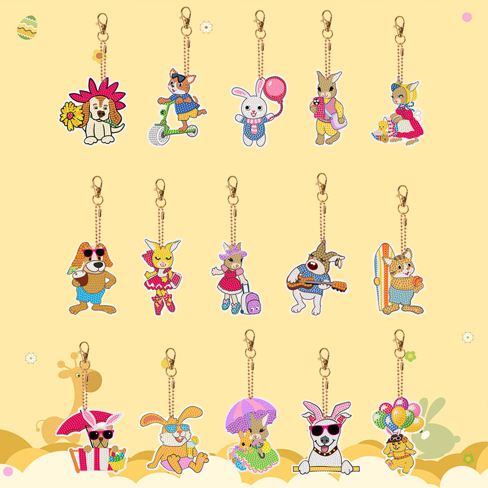 8/15PCS Animals Double Sided Diamond Painting Art Keychain Pendant for Beginners
