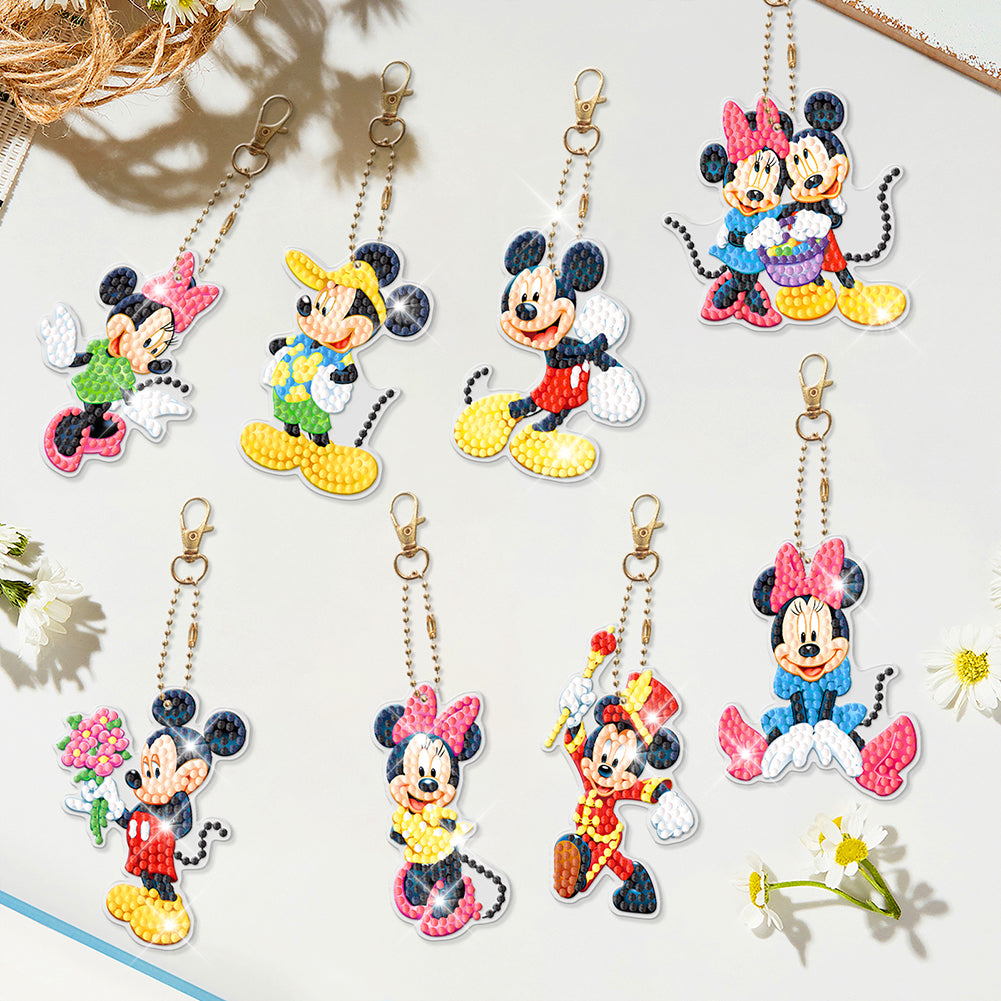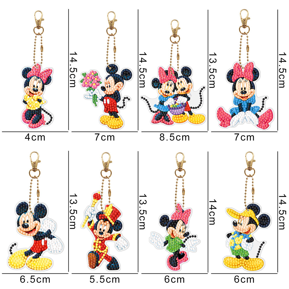 8pcs DIY Diamond Art Key Rings Art Craft Cartoon Double Sided 5D Gifts (YSK124)