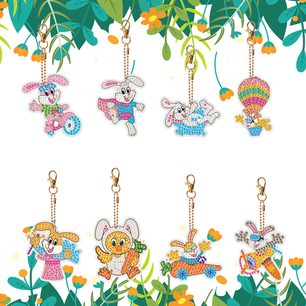 8PCS Double Sided Diamond Painting Keychain for Beginners (Cartoon Rabbit)