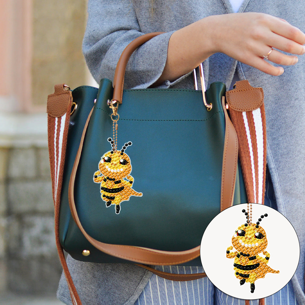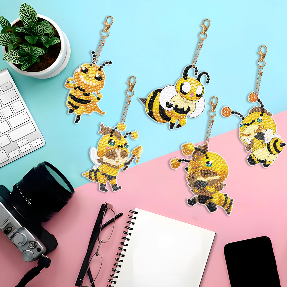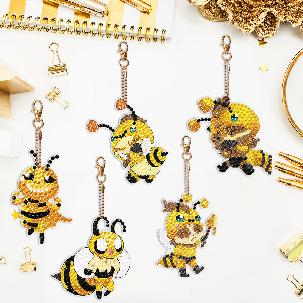 DIY Diamond Ornament Decoration Bee 5pcs Diamond Art Key Rings Owl Gift for Kids