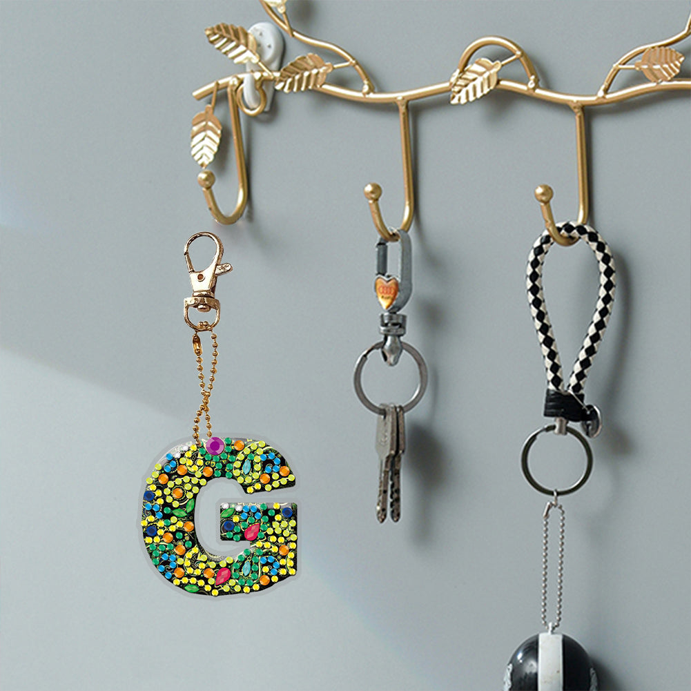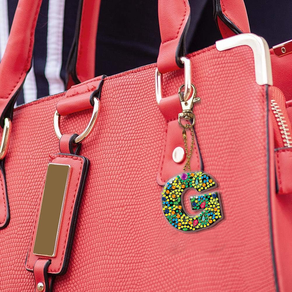 DIY Pocket Mirror Handmade Gem Keychains Letters Lady Bag Pendant (G)