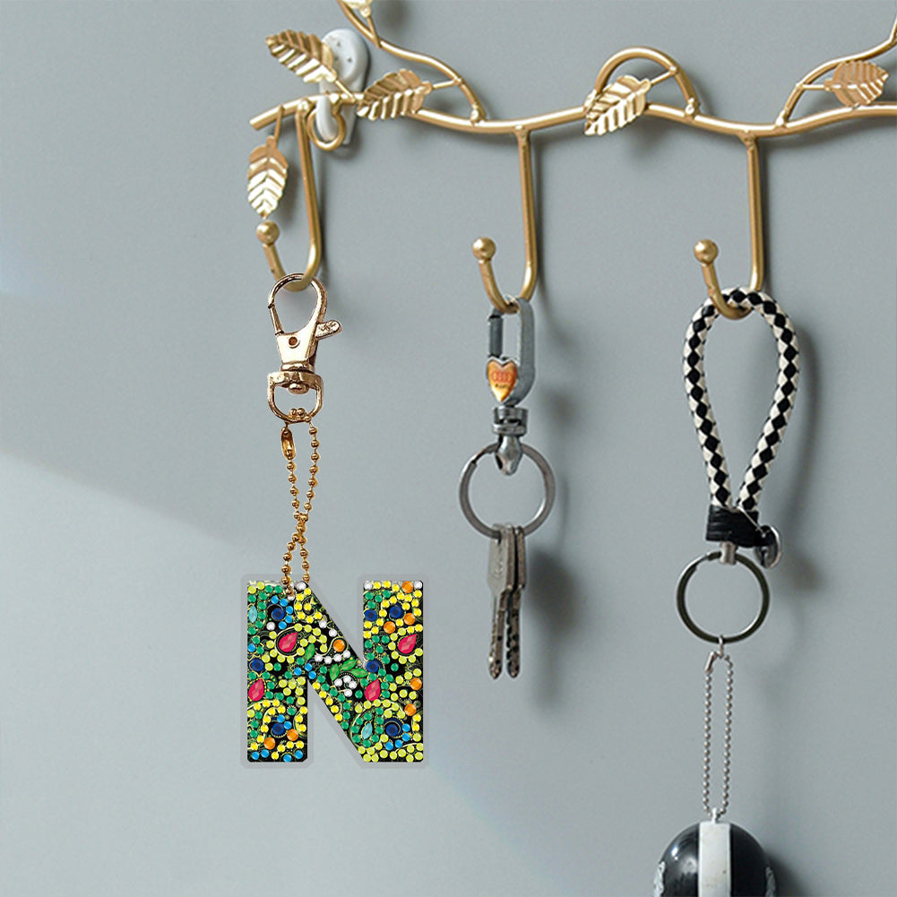DIY Pocket Mirror Handmade Gem Keychains Letters Lady Bag Pendant (N)