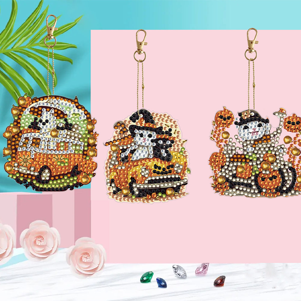 Double Sided Diamond Art Keychains Pendant DIY Shaped Drill Diamond Art Ornament