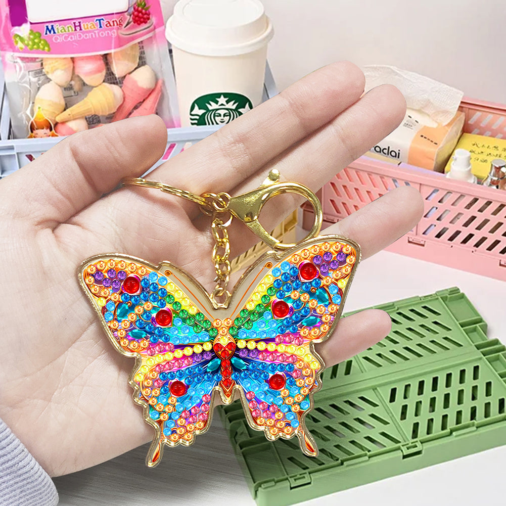 Metal Double Sided Special Shaped Butterfly Diamond Painting Art Keychain Pendant DIY Diamond Painting Keychain DIY Crafts Decor